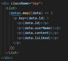 setDatas(data)를 통해 기존의 useState를 이용해 만들어놓은 변수배열에 넣는다.