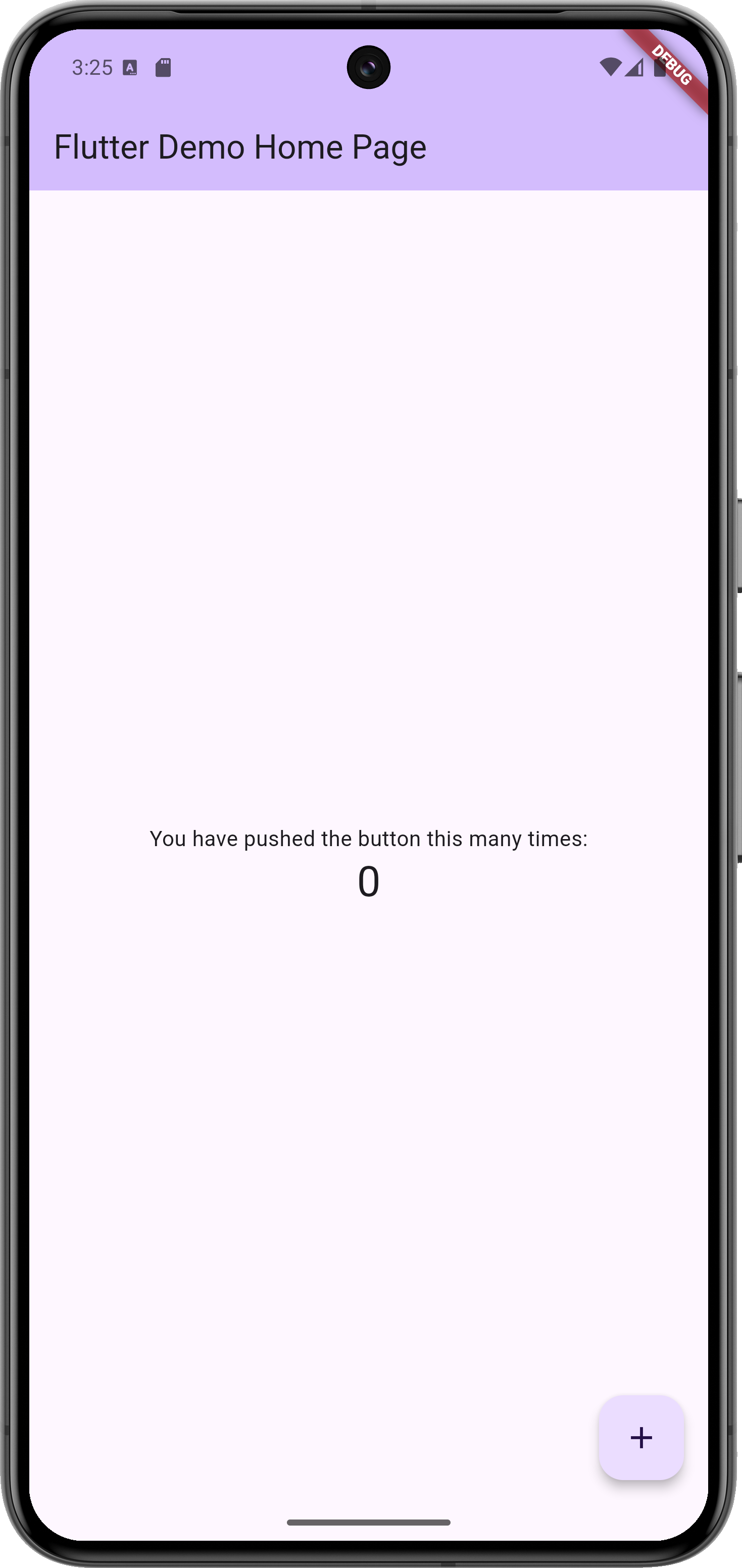 화면 상단에 고정되어 있는 appbar와 화면의 내용을 담은 boby, '+'버튼인 플로팅 액션 버튼을 확인할 수 있다.