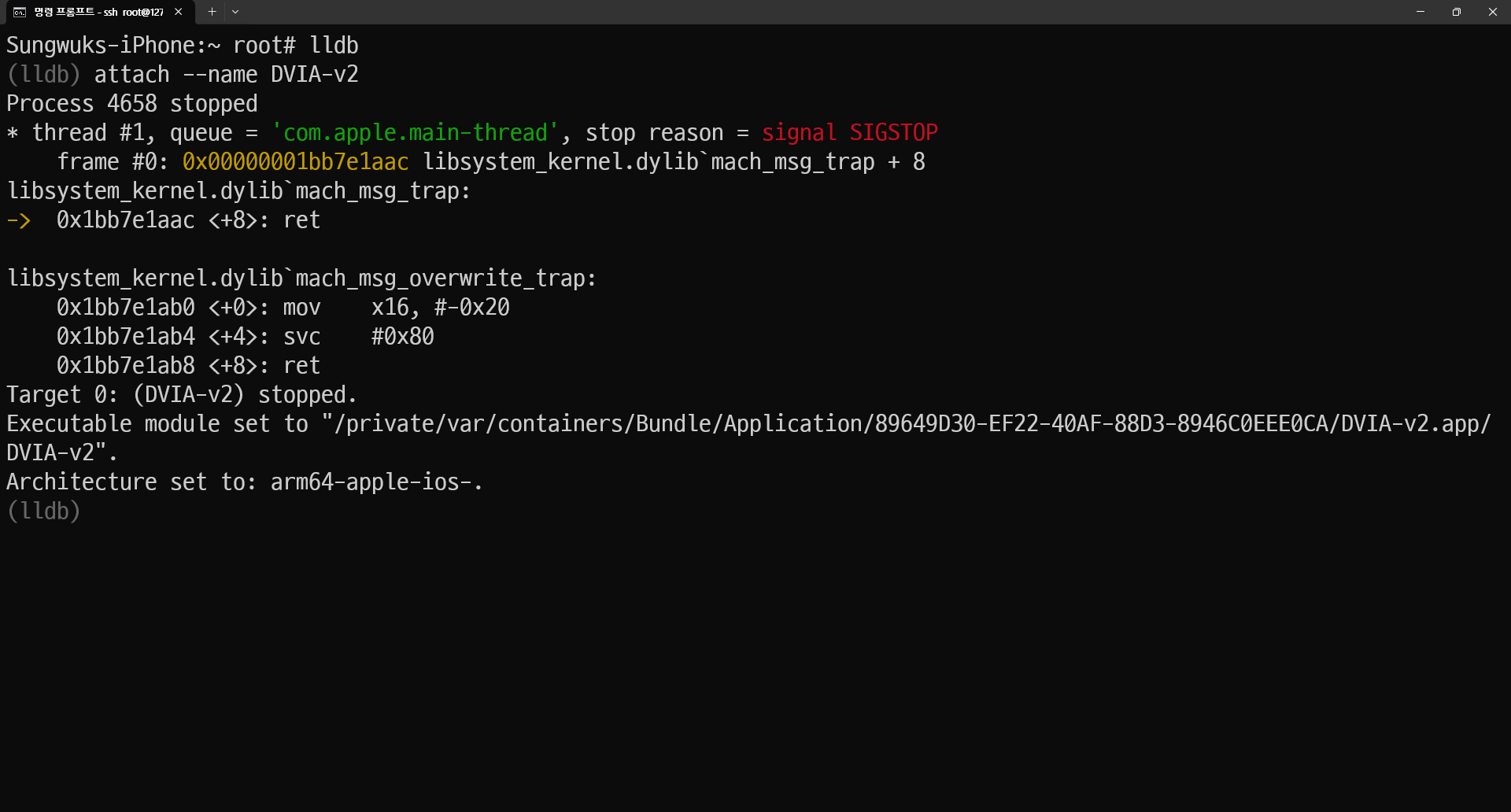 디버거가 정상적으로 attach 하면 앱이 breakpoint 걸려서 터치가 안먹는다.