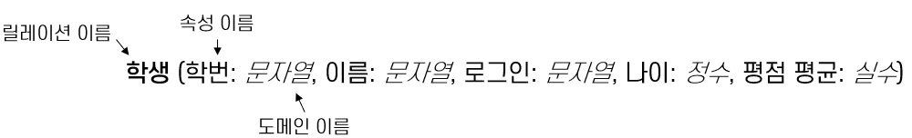 릴레이션 설명 -> 릴레이션 스키마