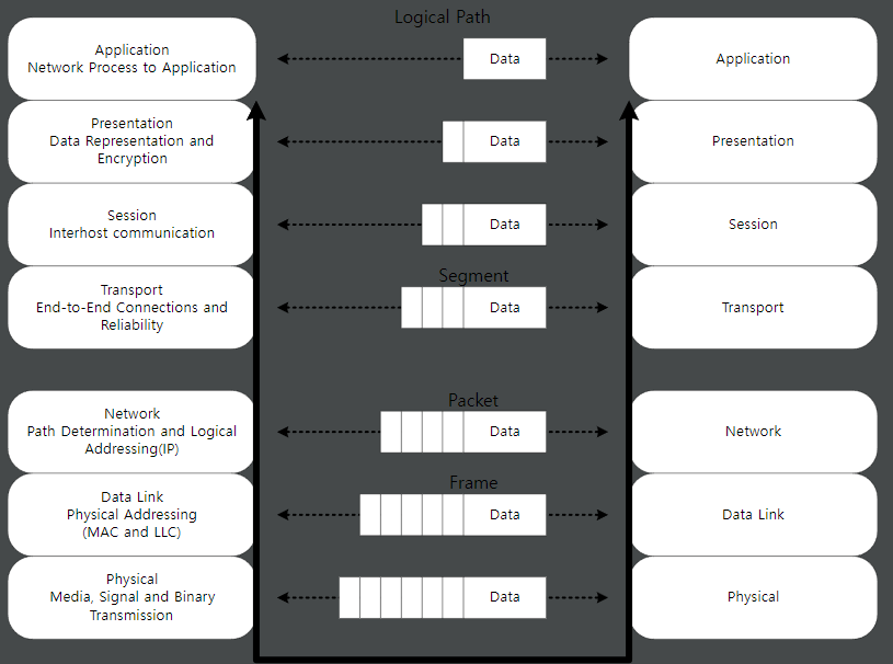 OSI model : 네트워크 기능을 계층으로 분리하는것 (OSI 7 Layer / TCP-IP 4 Layer)