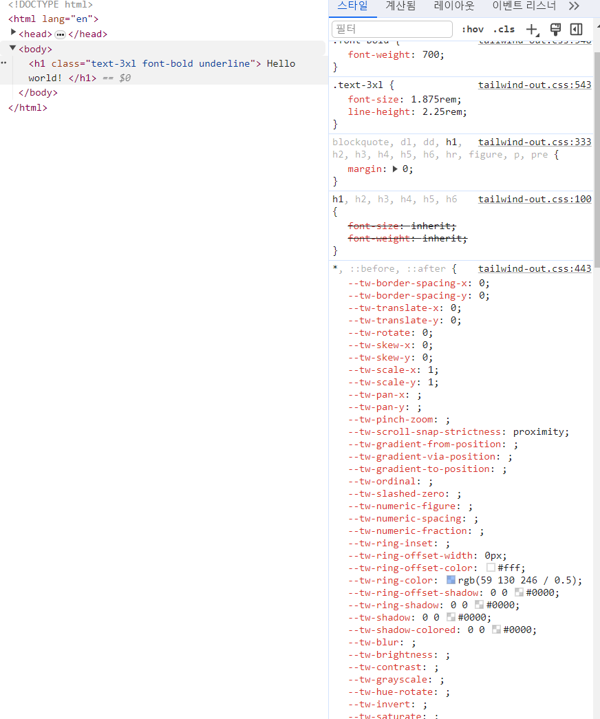 tailwindcss를 대충 봐도 h1 태그에 underline이 있는데, 안먹은 것 같습니다.