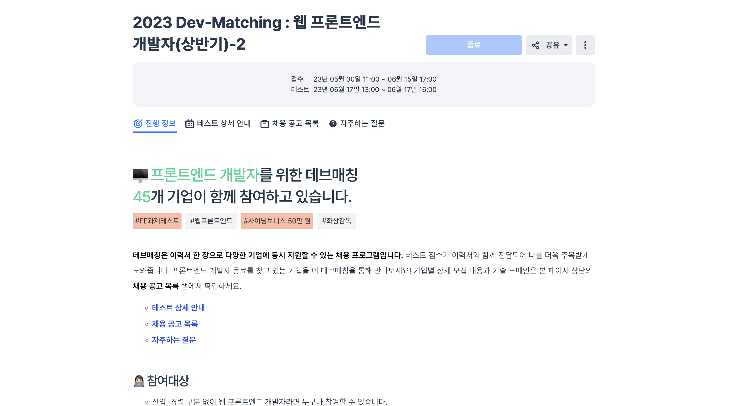 토요일날 데브 매칭 과제 테스트를 진행했다.