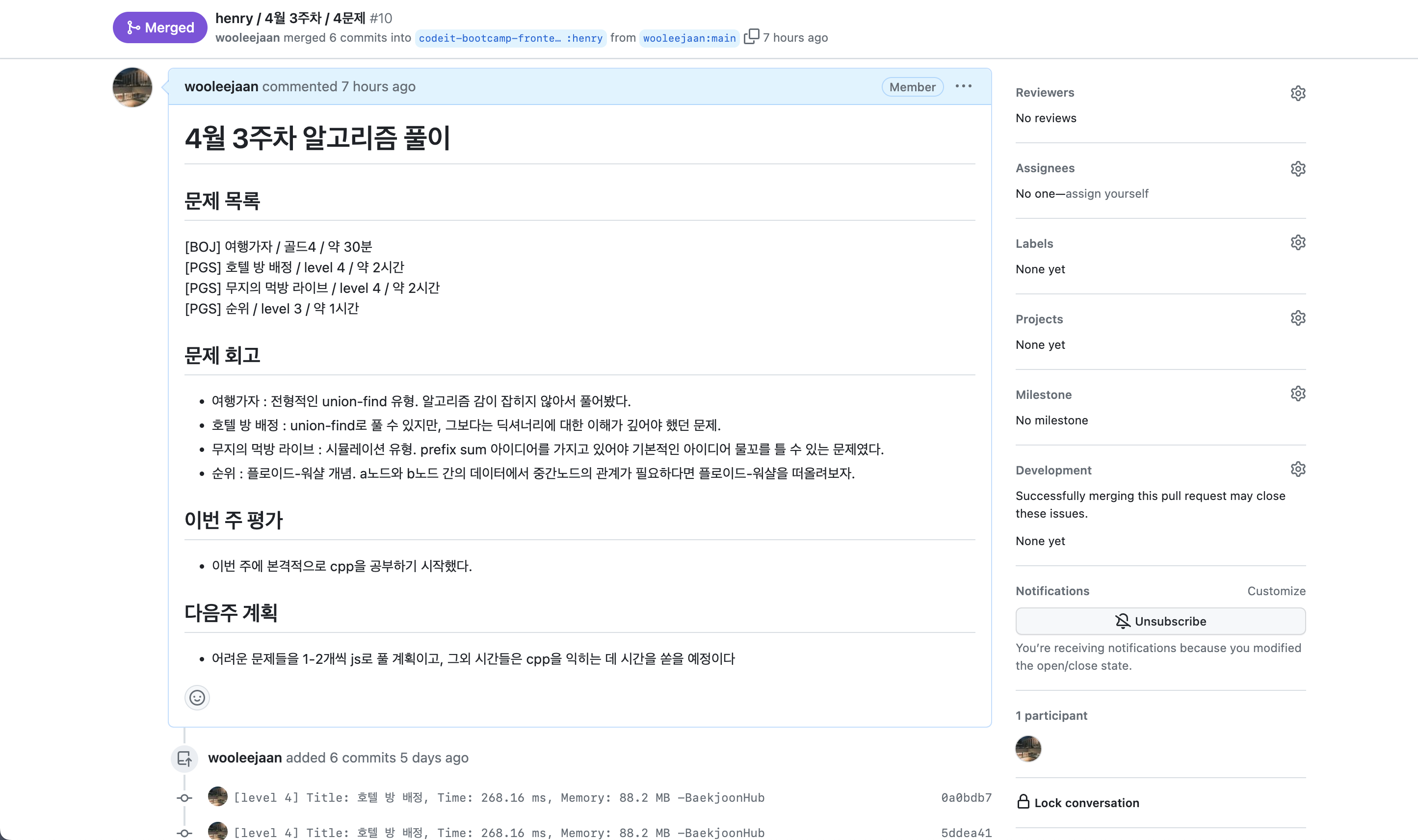 위클리 미션을 하느라, 강의를 듣느라, 알고리즘을 듣느라 ...