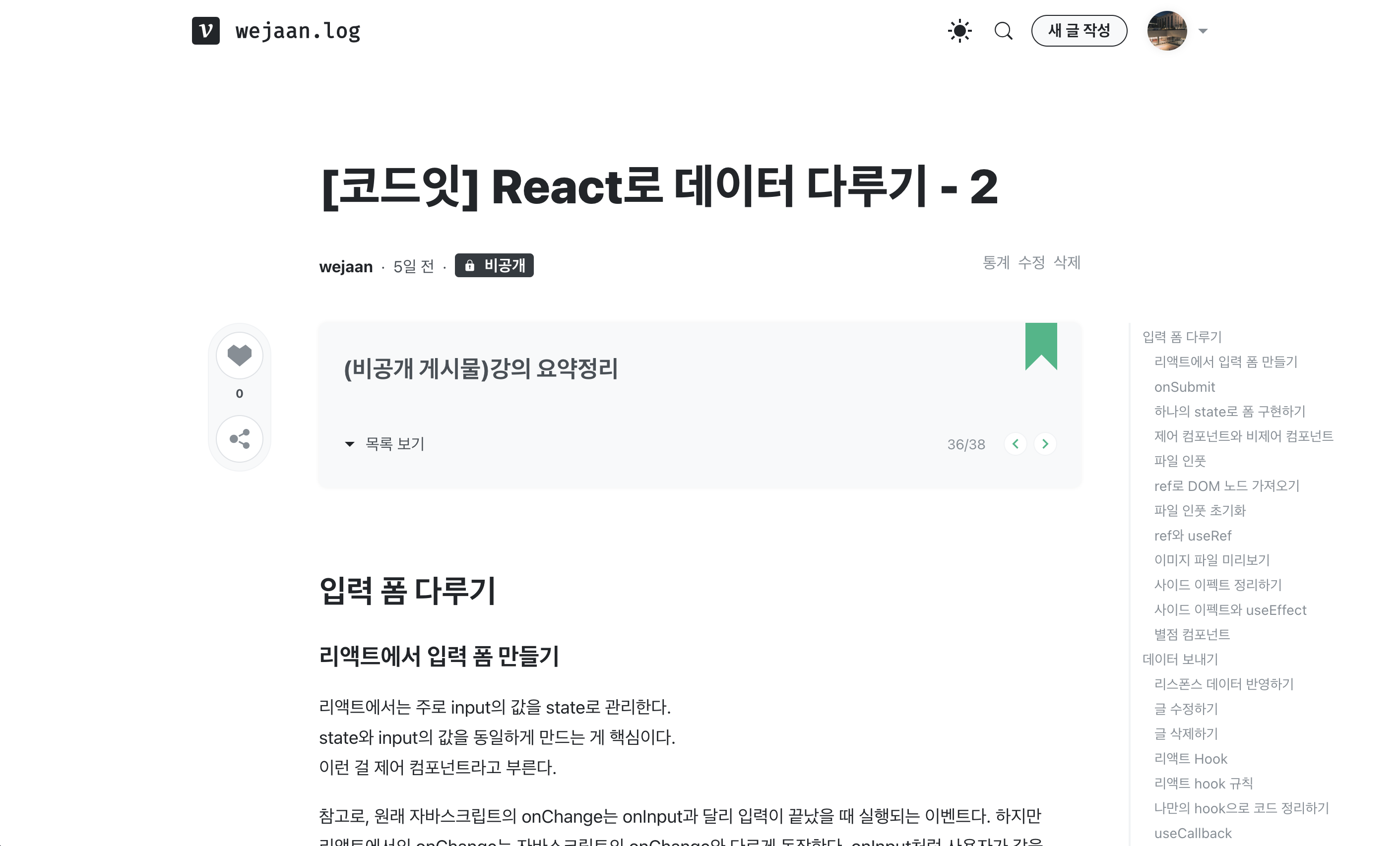 강의를 보통 정리하면서 듣는데, 아무래도 강의 요약 정리는 내 지식이 아니라고 생각해서 전부 비공개해두었다.