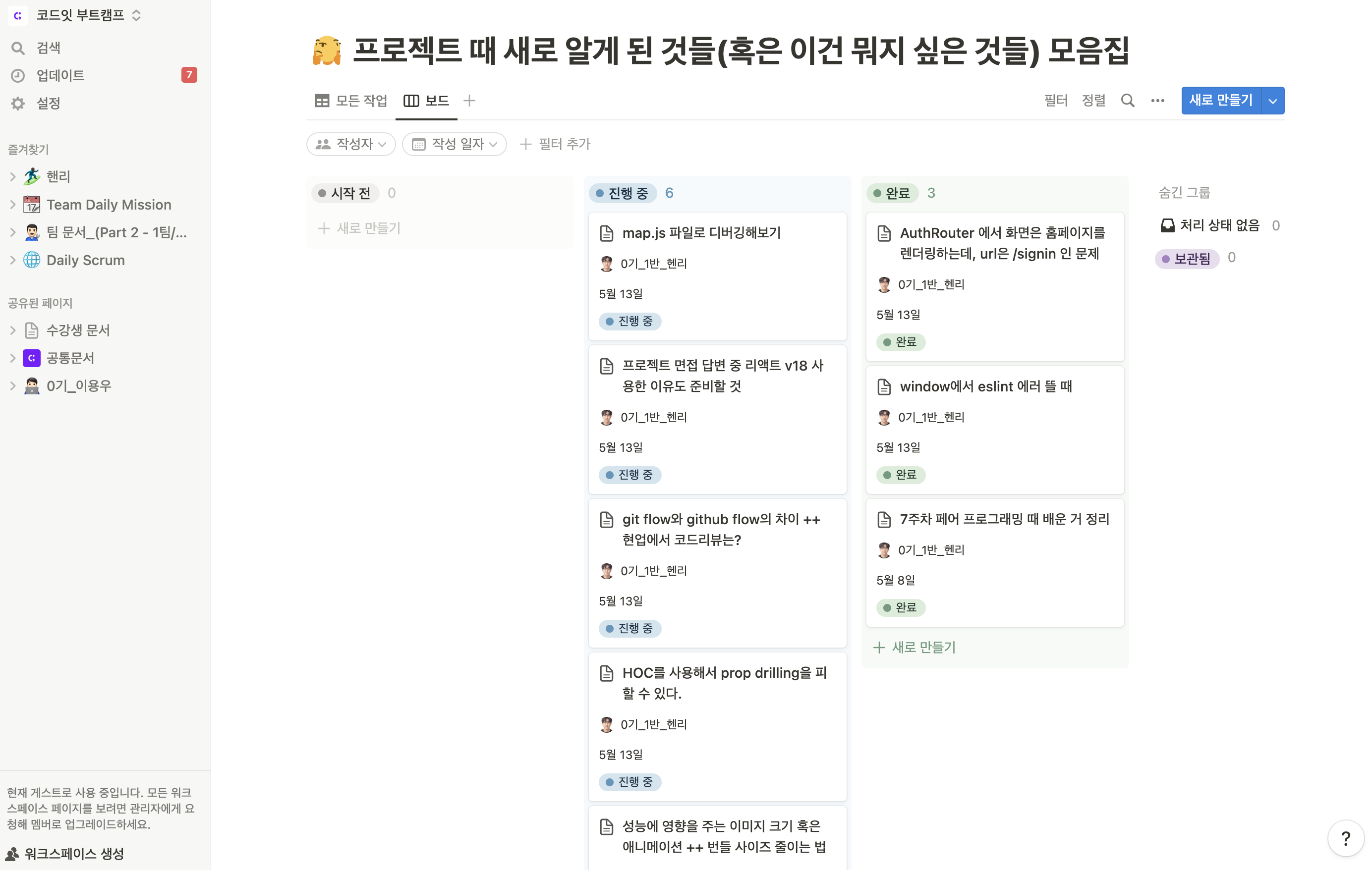 그래서 팀원 간에 서로 배운 것들을 공유하는 모음집을 관리하기 시작했는데,