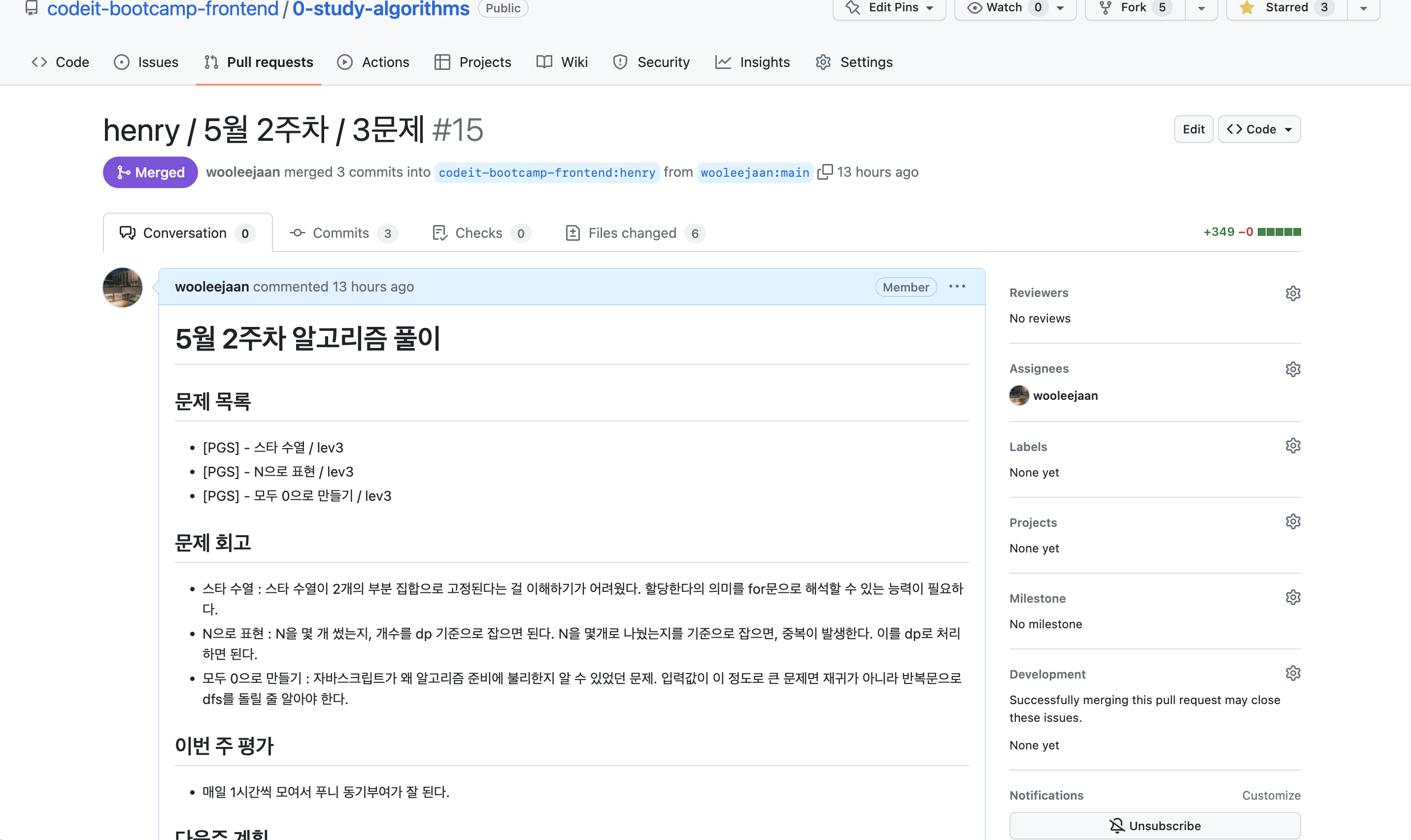 아직까지는 별 일 없었지만, 브랜치를 나눠 협업하다보면 conflict도 많이 날 것 같고, 그 과정에서 실수를 많이 할 것 같아 걱정이지만 잘 해결해 나갔으면 좋겠다.