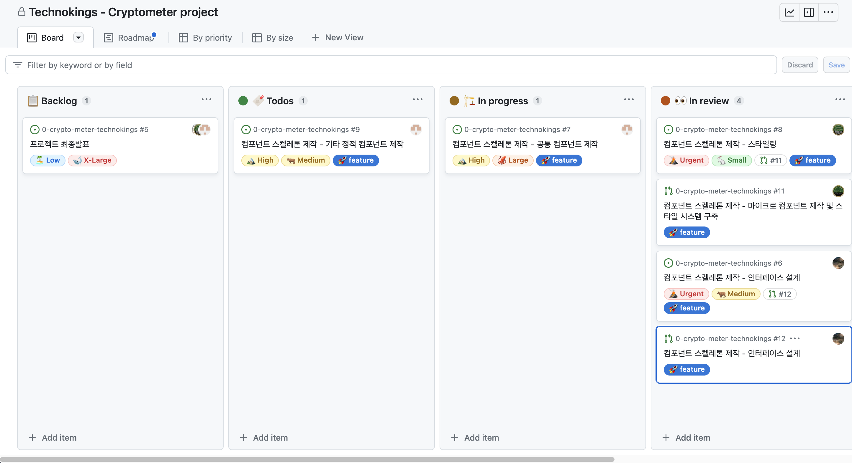 깃허브 프로젝트를 통해 칸반보드 작성도 관리하기로 했다.