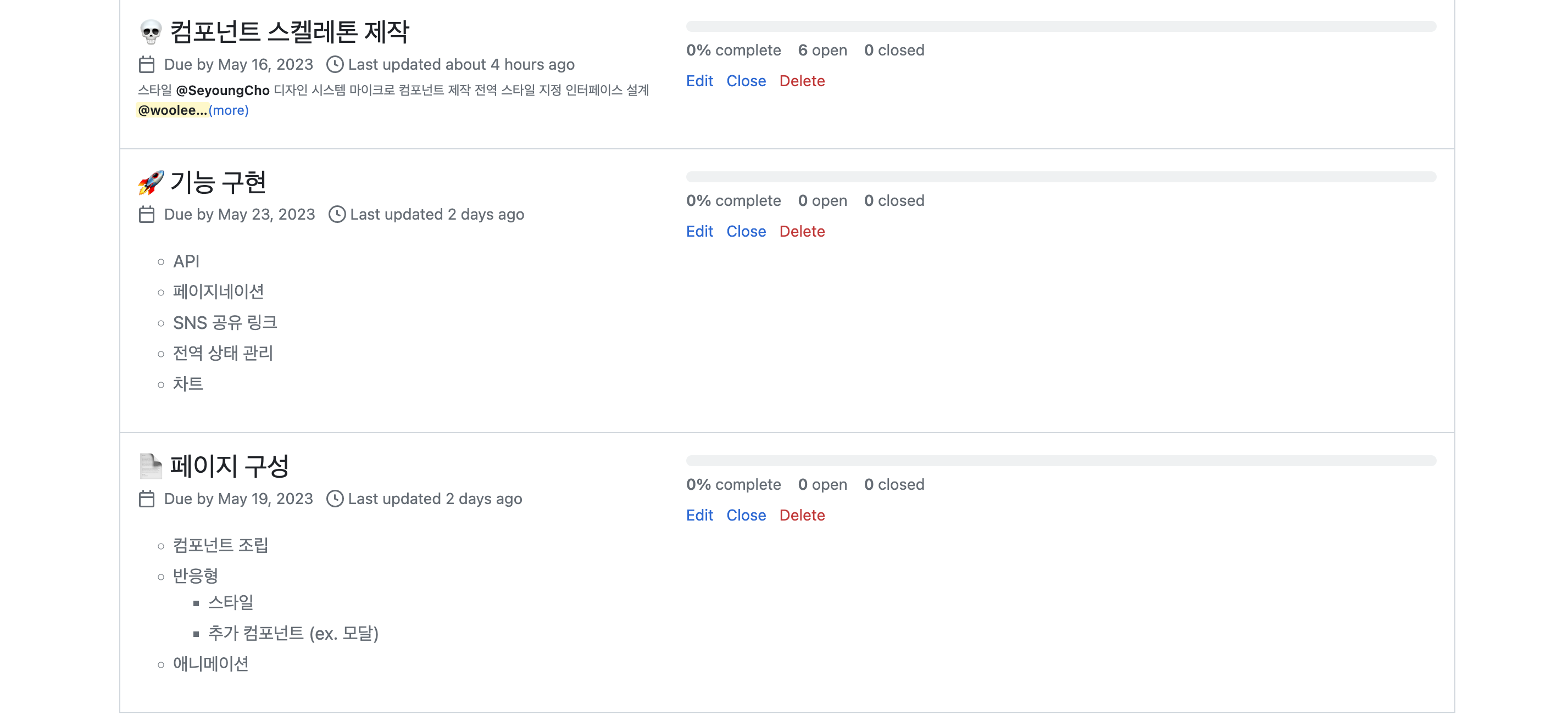 이번 1차 프로젝트는 디자인 시안과 기획이 이미 확정된 상태로 전달 받아서 개발하는 방식이다. 그러다 보니, 애자일 방식을 온전히 수용하기에는 어렵다고 생각했다.