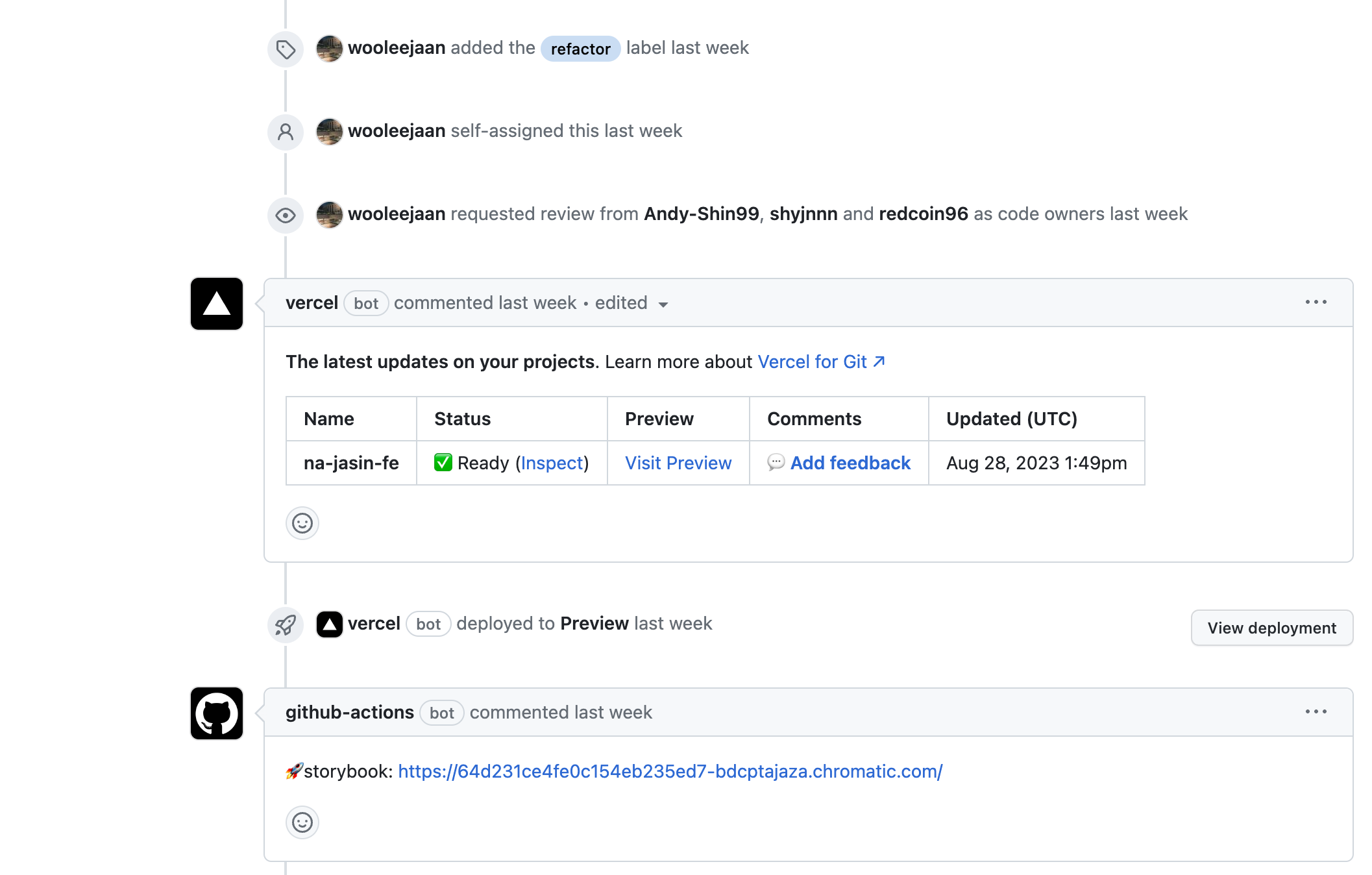 팀원들이 크로마틱을 통해 스토리북을 배포하고, PR 시 자동 배포되도록 github action을 작성했다. 덕분에 매 PR마다 코드만 보지 않고 시각적으로도 컴포넌트를 확인할 수 있어 코드 리뷰가 훨씬 생산적이었다.