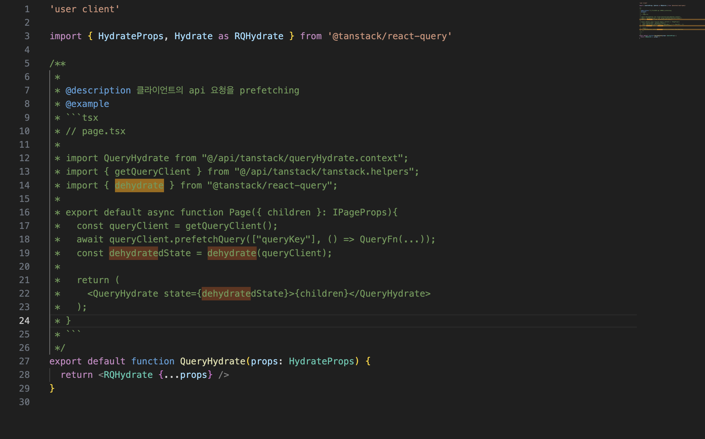 next js의 app router를 사용하면서 서버 컴포넌트를 적극적으로 사용할 때 tanstack query의 dehydrate이 유용했다.