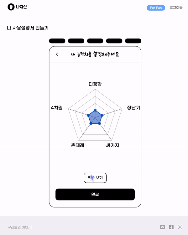 나에 대해 스스로 설명해보고, 또 타인에게 나를 설명해달라고 부탁함으로써 나를 좀 더 객관적으로 볼 수 있게 해주자는 의도에서 시작한 서비스.