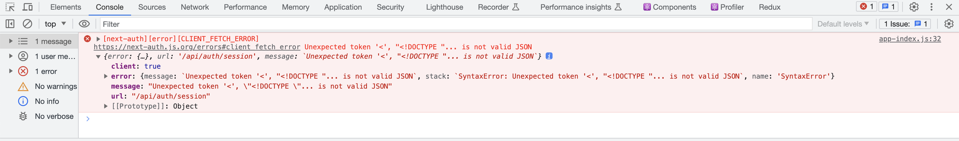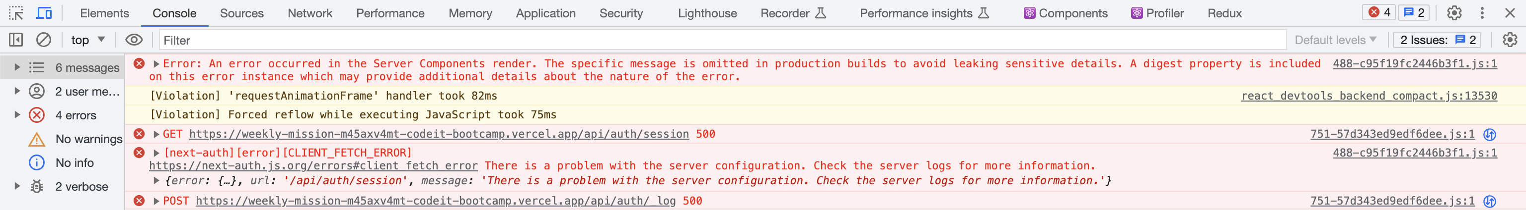두번째로는, 미들웨어로 접근을 막았을 때 계속해서 아래 에러가 떴다.
