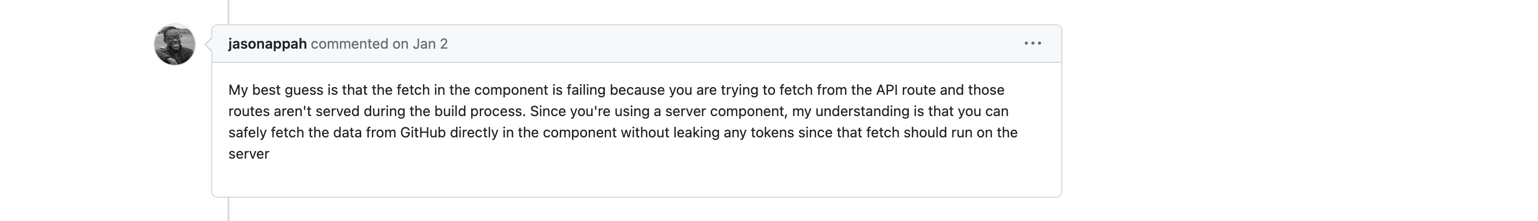 로컬에서는 정상적이어서 몰랐는데, 아무래도 서버 컴포넌트에서 데이터 가져오는 코드는 훅으로 빼면 안 되는 듯 하다.