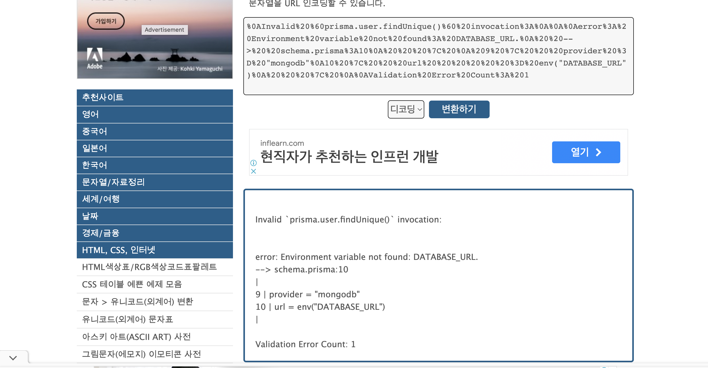 친절하게도 쿼리스트링으로 에러 메시지를 보내준다. 디코딩하니 이렇게 뜨는데, 환경변수를 설정했음에도 뭐가 문제일까..