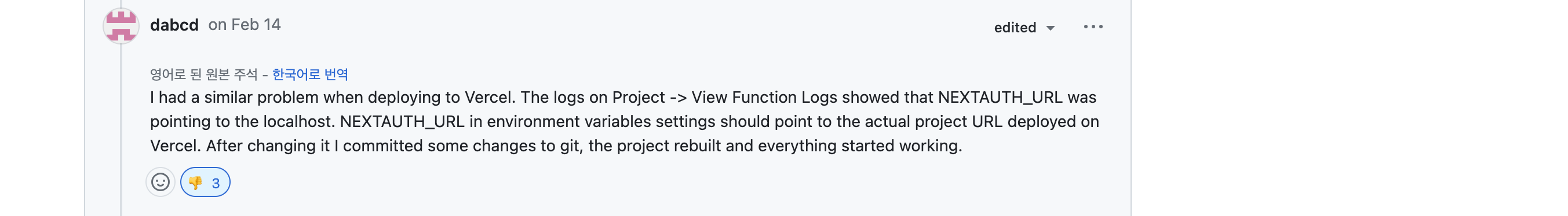 [...nextauth]/route.ts에 secret을 추가해주고 배포 환경변수도 추가해줬더니 해결했다..