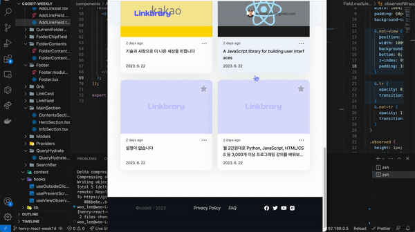 링크를 추가하는 영역이 footer를 만나면 사라지게 만들었다.