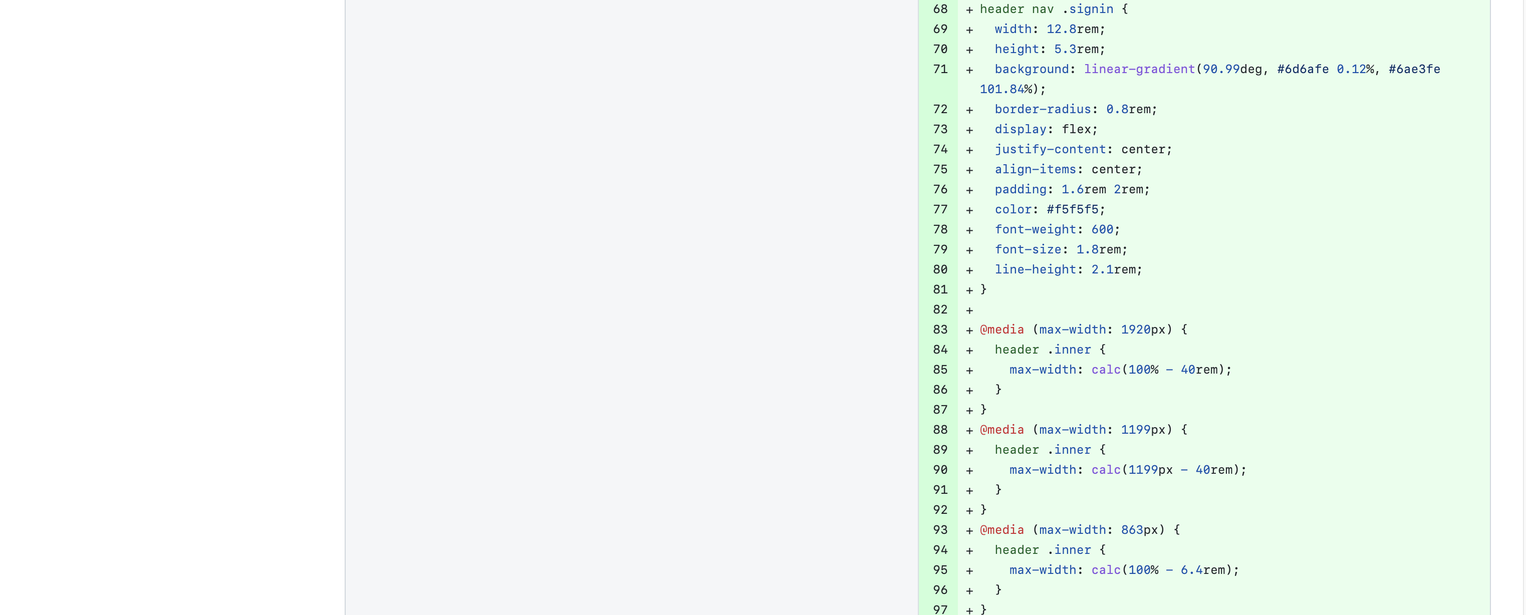 하나의 css 코드 영역에 반응형 코드를 병합해서 가독성을 높였다.