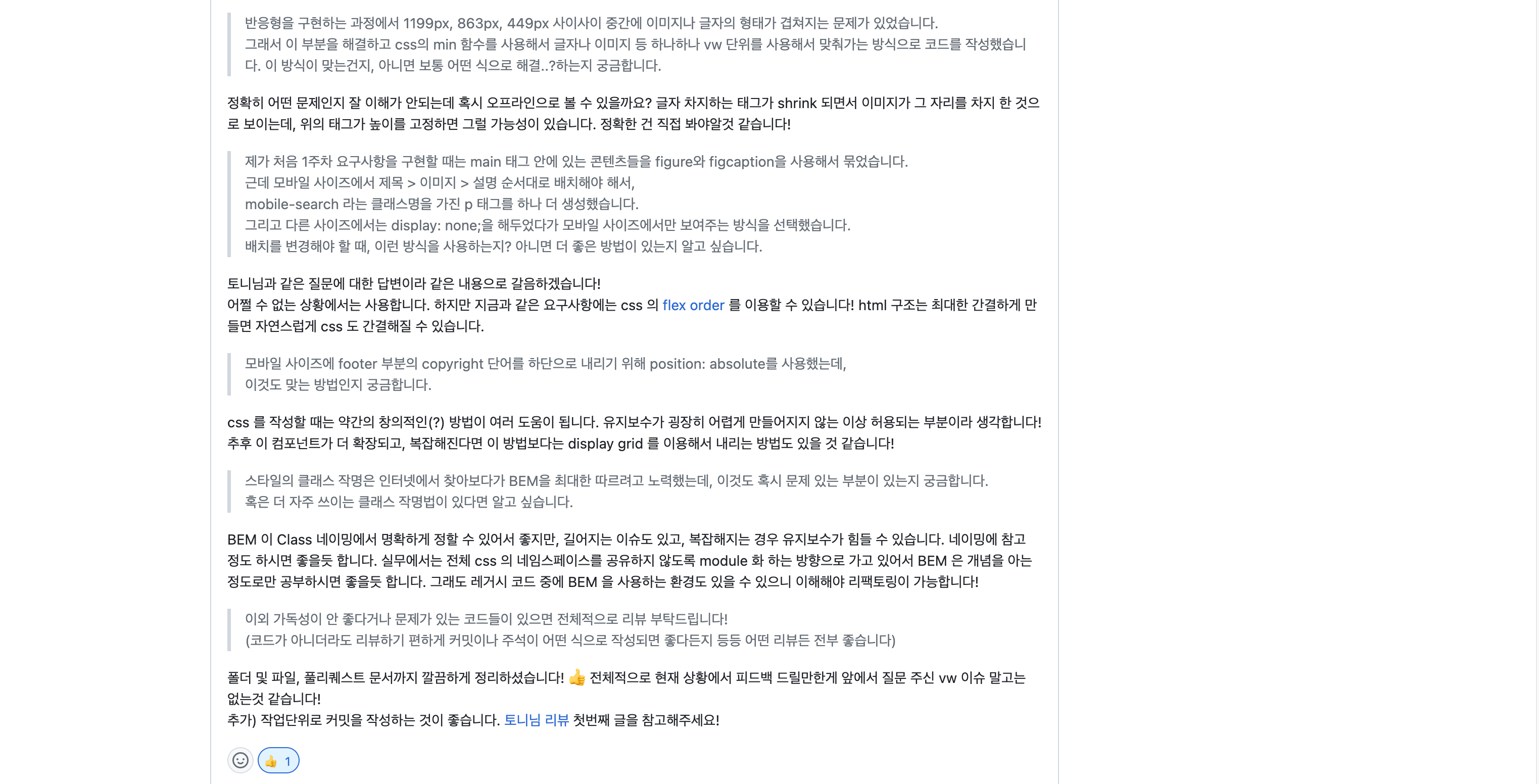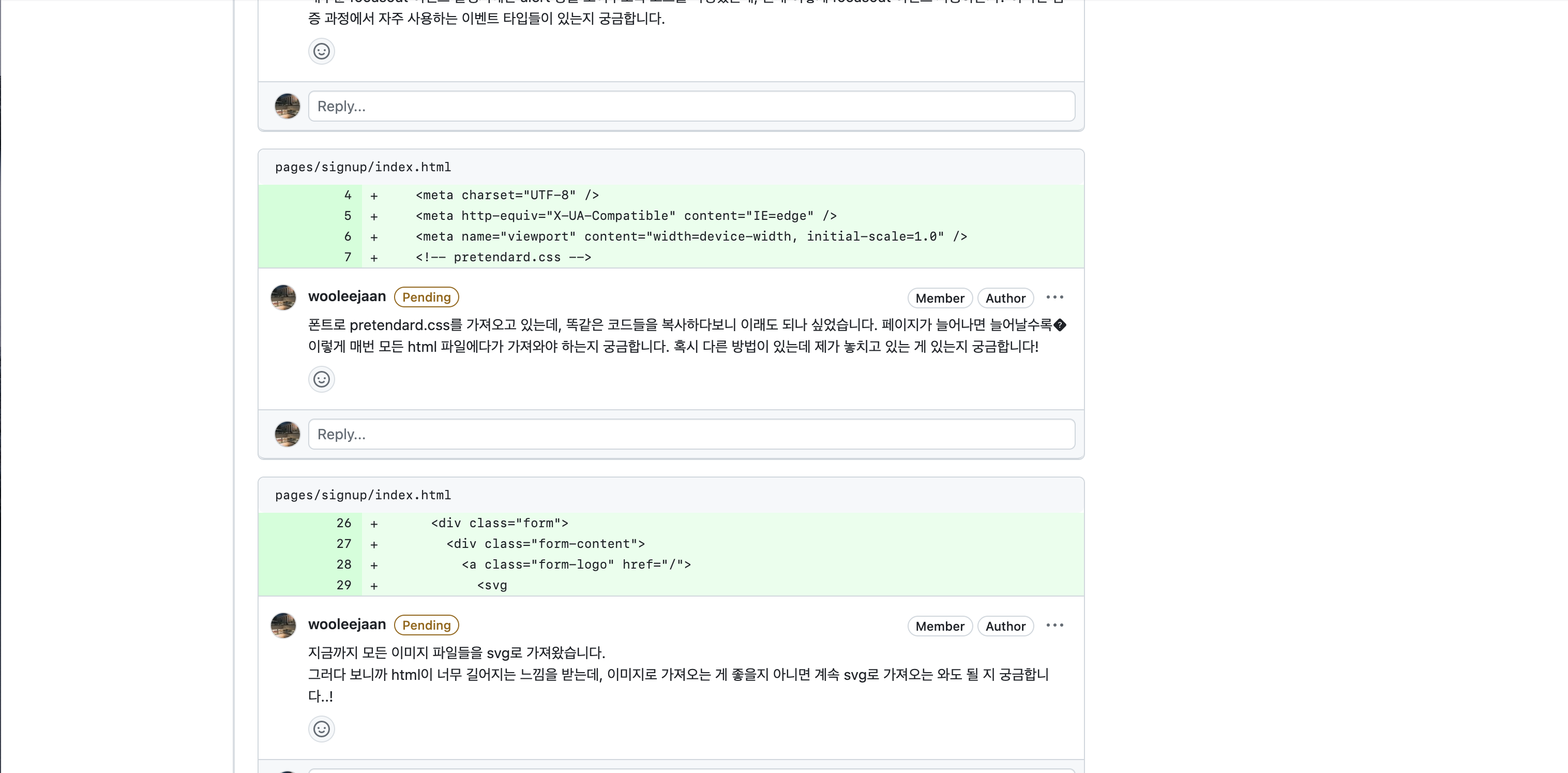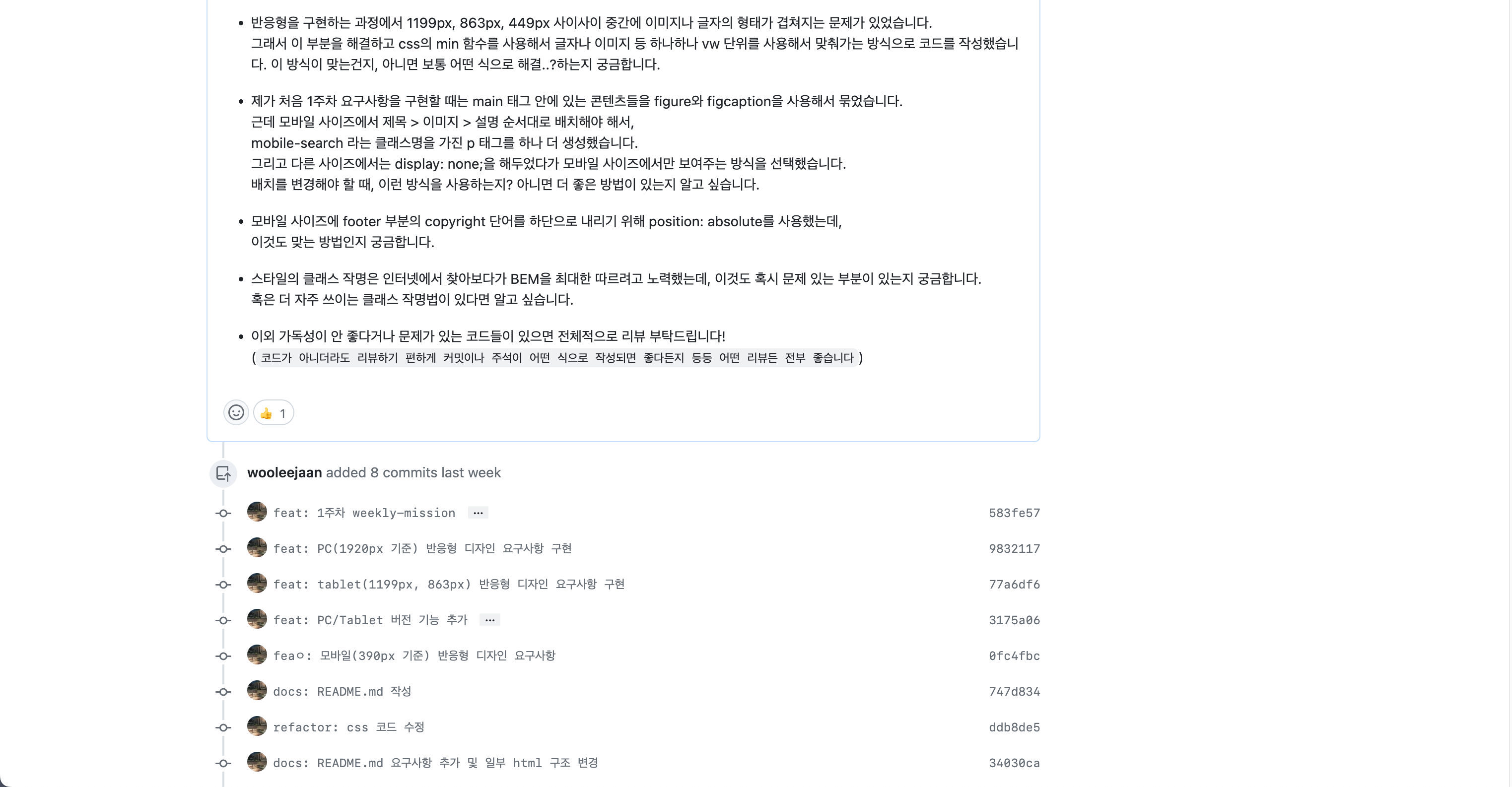 PR 내용으로만 질문을 남겼는데 다음부터는 코드에 직접 질문을 추가하는 방식을 사용해야겠다.
