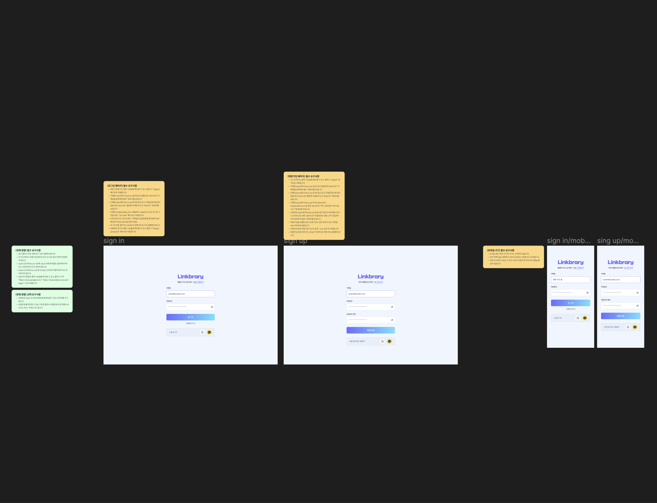 로그인 페이지와 회원가입 페이지를 만들고