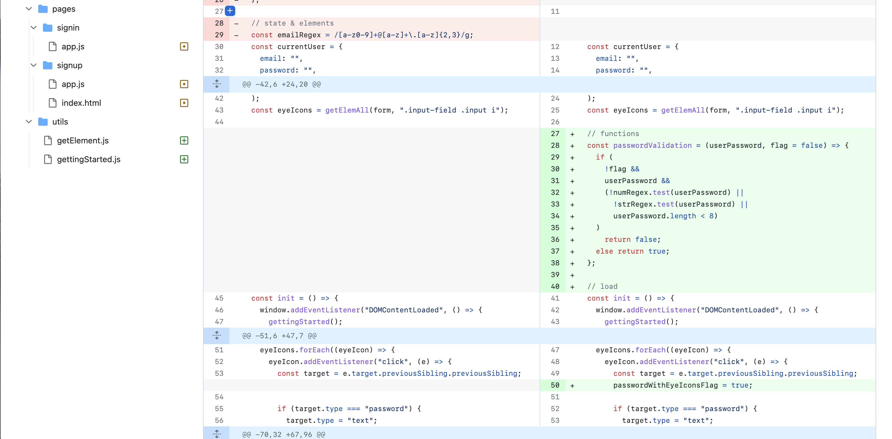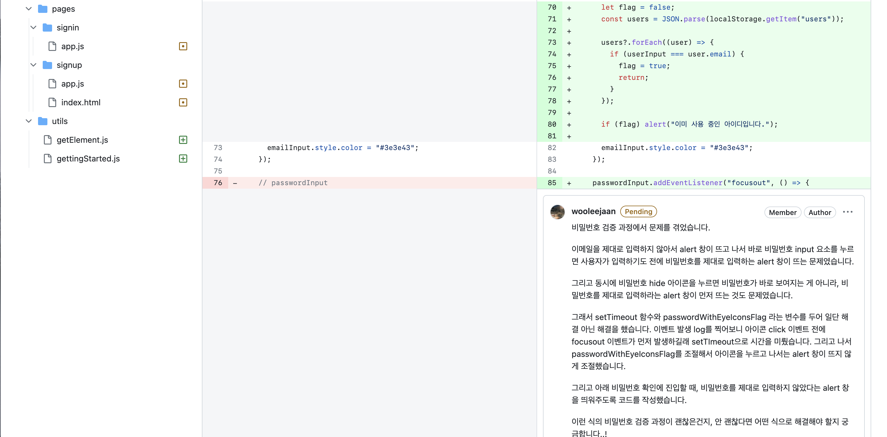 html, css는 사실 저번 주차의 연장선상이었고 회원가입/로그인 페이지 자체는 복잡한 구조는 아니었기에 쉽게 구현할 수 있었다. 문제는 JS였다!
