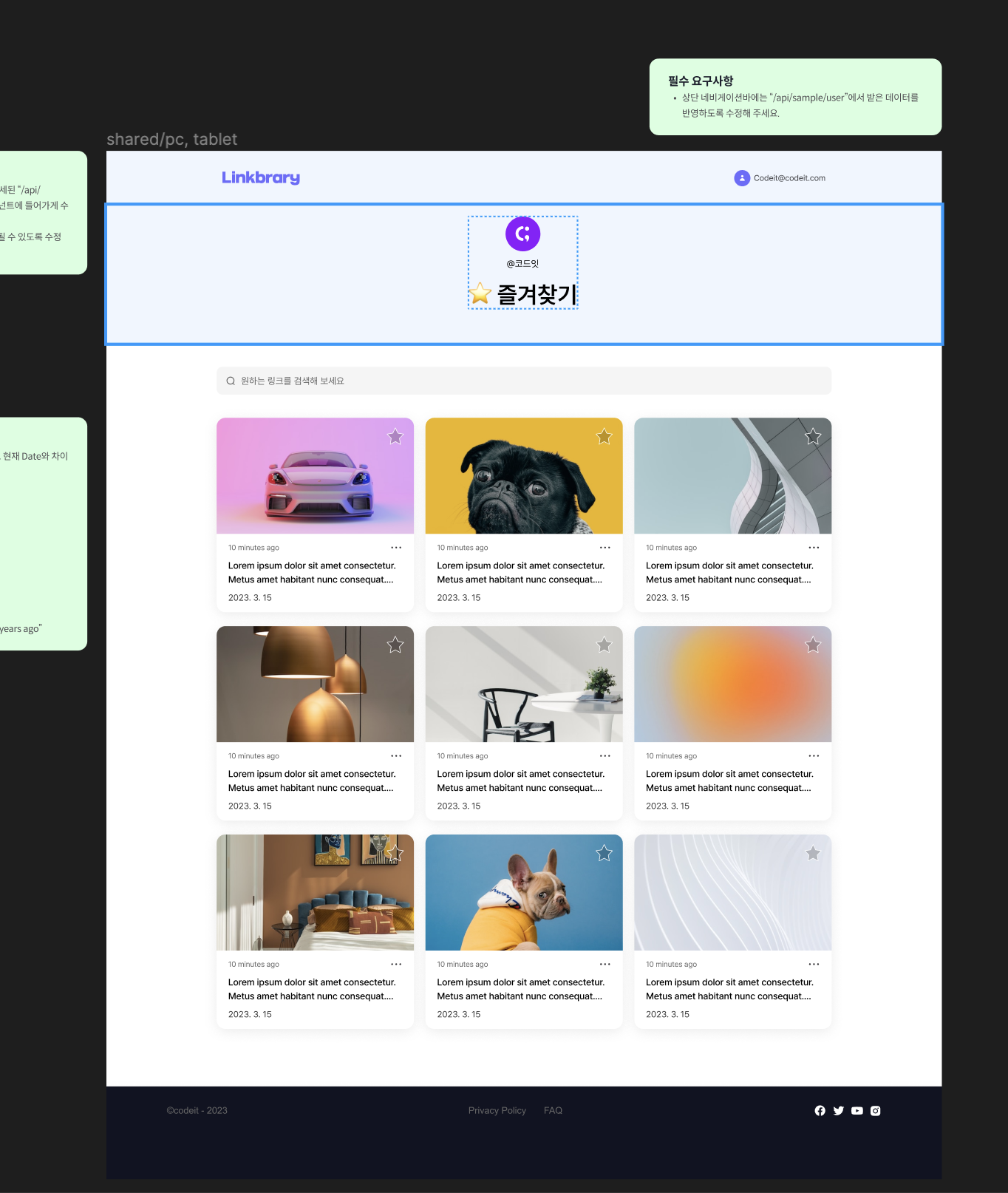 지난 주 컴포넌트에 하드코딩했던 데이터들을 api에서 받아오는 걸로 변경하는 게 메인 요구사항이다.