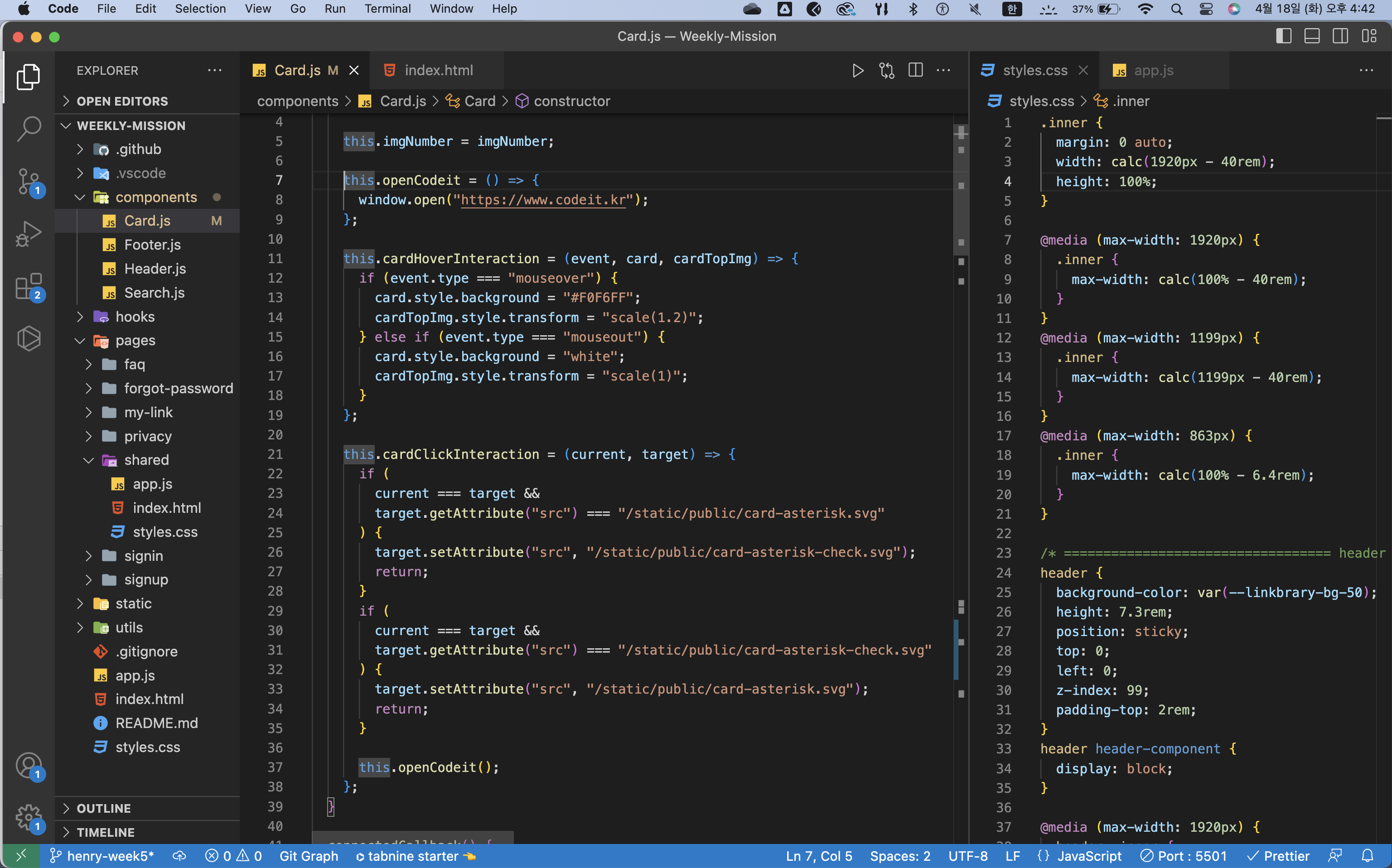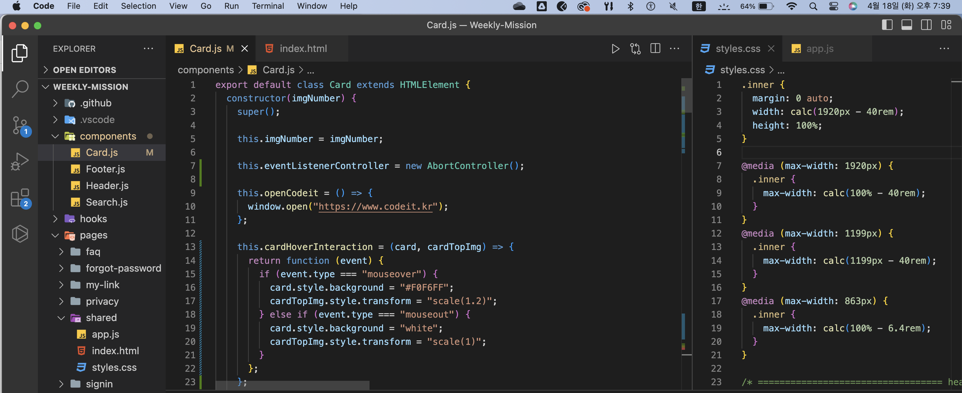 Footer/app.js가 아니라Footer.js로 변경하기- 이중 삼항 연산자를 쓴 부분이 있는데, 유지보수 시 가독성이 떨어질 수 있으므로 if or switch로 변경하기