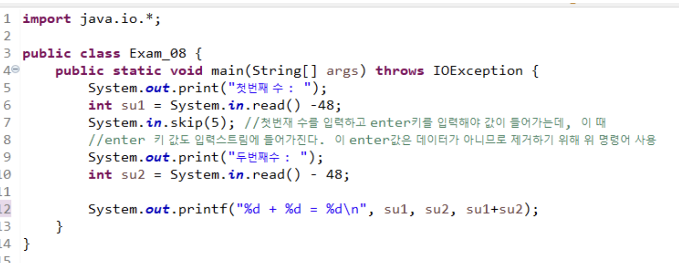 캐릭터형은 넥스트가 안된다 !!! 다른명령어를 써야하는데 ~ 그게 system.in.read(); !!