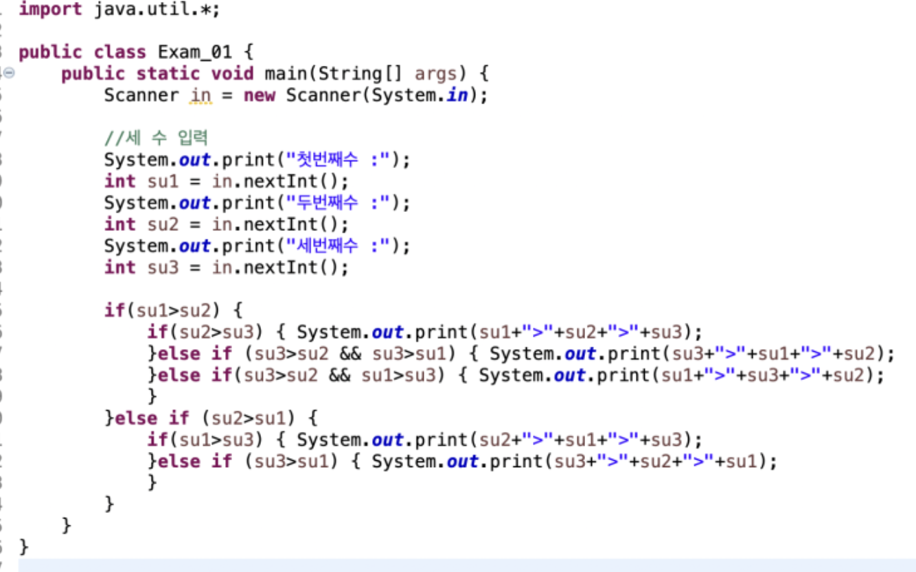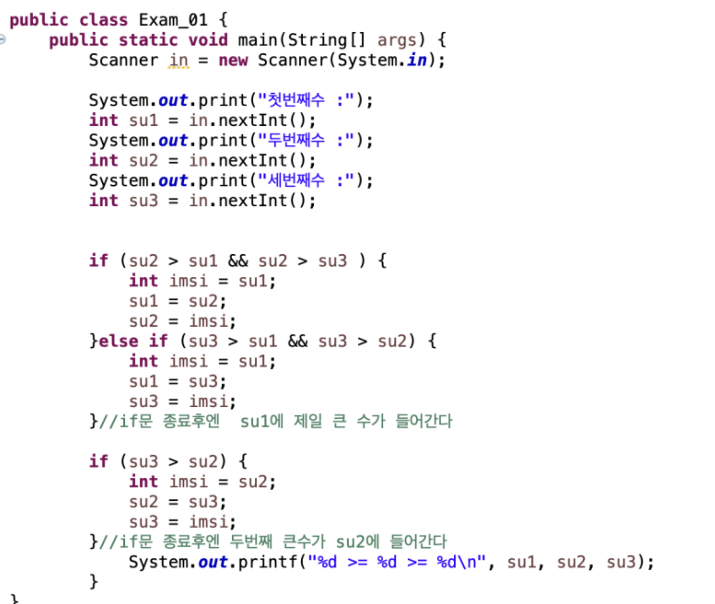 ** 그 다음 변경된 순서에서/ 두번째 세번째 수를 비교해주는 새로운 if문 작성@