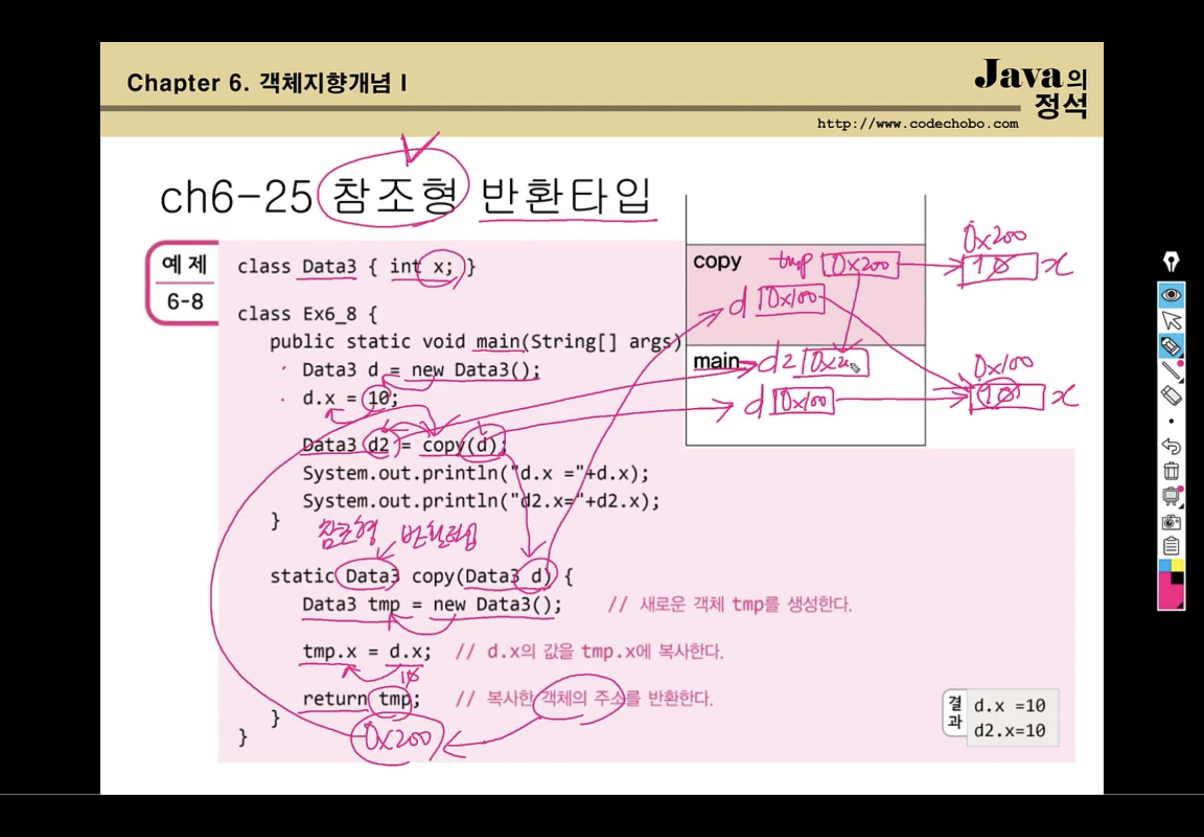 - 반환타입이 참조형이라는 것은? - 객체의 주소를 반환한다. (객체를 반환)