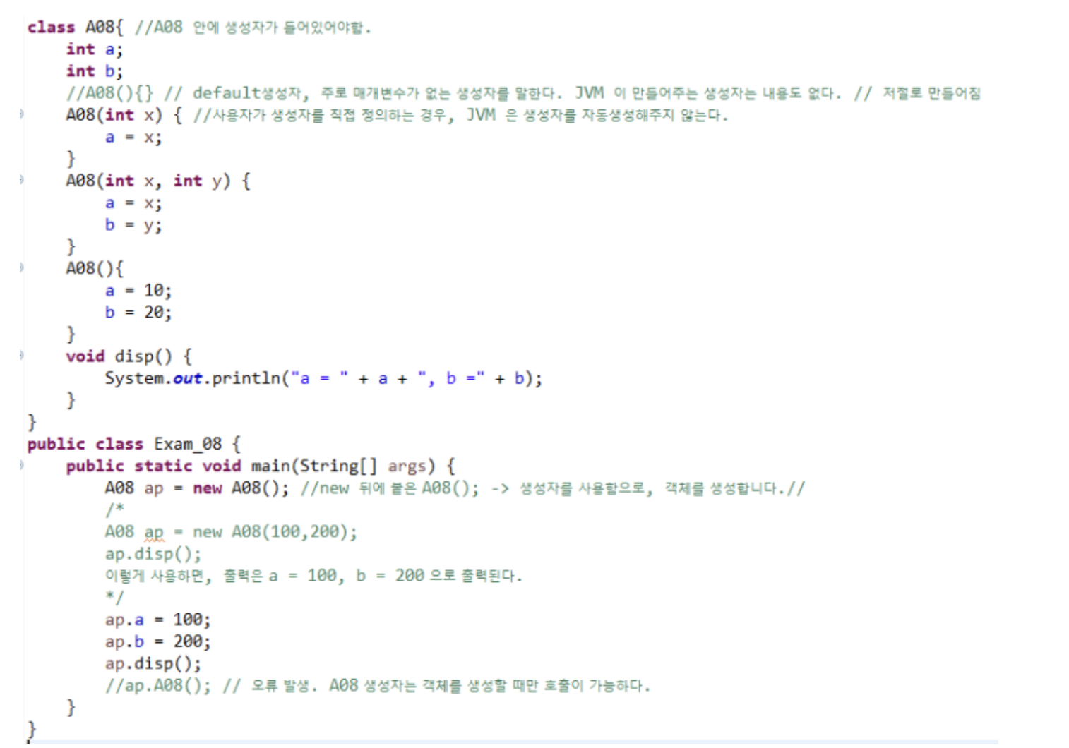- 리턴값이 없다. (void 안붙임) / 대입문 / 원래 메서드는 리턴값없으면 void 붙이자나 . 얘는 왜 안붙여? 항상 반환값이 없으니까. 규칙임