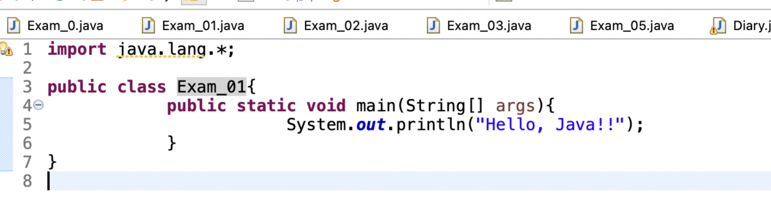 - java.lang.*; : 자바를 실행 시키는데 꼭 필요한 애들 묶음 / 있어도 되고 없어도 됨