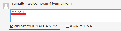 만약 원격 저장소에 즉시 push를 체크해제를 한 후 커밋을 하게 되면 push를 하기 전 까지 그 커밋은 로컬 저장소에만 존재하게된다.