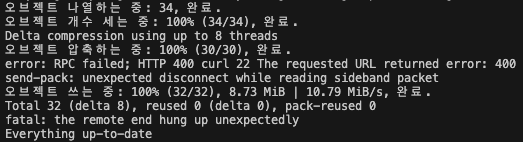 [Git] error: RPC failed; HTTP 400 curl 22 The requested URL returned error: 400 send-pack: unexpected disconnect while reading sideband packet