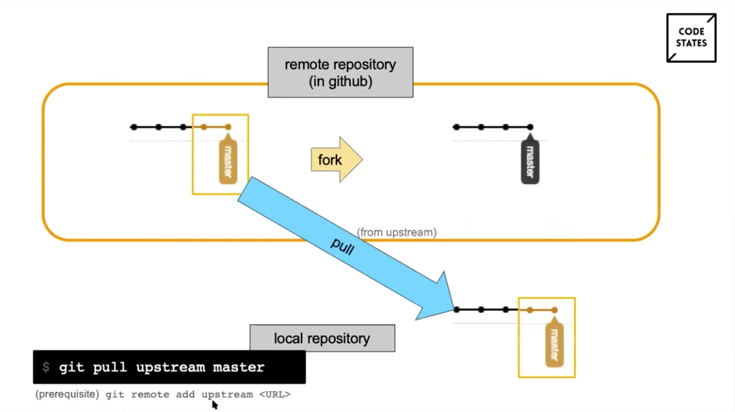 - work flow : 제일 master 에서 내 repository 로 옮겨서 내 컴퓨터에 다운받아서 고치고 push로 올리고, 온라인 상의 변경 사항이 발생하면 pull 로 다시 땡겨와서 업데이트 사항 적용하고 하면서 작업한다.