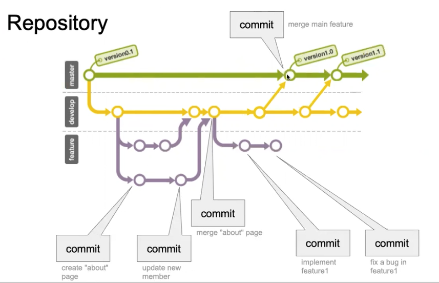 작업 내용에 대한 기록과 흐름등 모든것을 포괄해서 의미하는 개념이 repository 이다.
