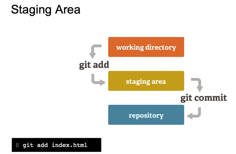 Staging Area : 변경 사항을 적용하려면 일단 staging area 에 add 해서 staging area 를 한번 거쳐야 하고, commit 을 하면서 repository 에 올리는데 이때 commit 은 스샷 하나하나를 올리면서 변경 사항에 대해 코멘트도 함께 덧붙이는 것을 의미 한다.