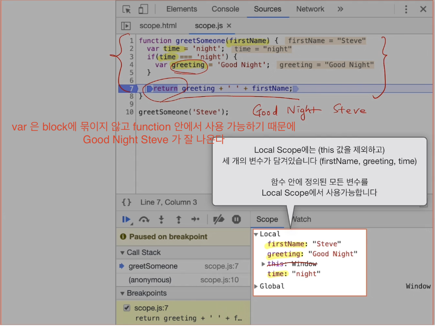 JavaScript의 Scope의 의미와 적용 범위를 이해할 수 있다