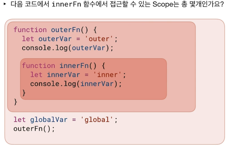 다음 outerFn(); 실행 시 찍히는 값은?