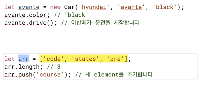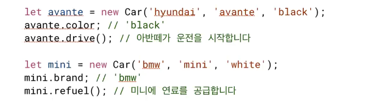 new 키워드를 통해 클래스의 인스턴스를 만들어낼 수 있다.