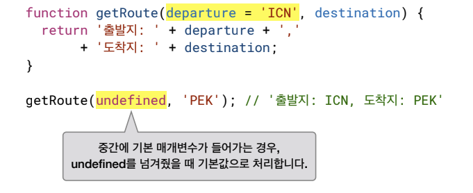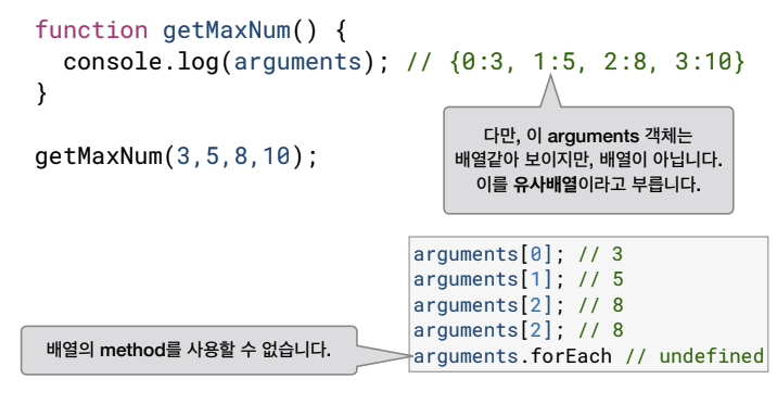 매개변수가 배열의 형태로 전달된다.(함수에 전달할 때만)