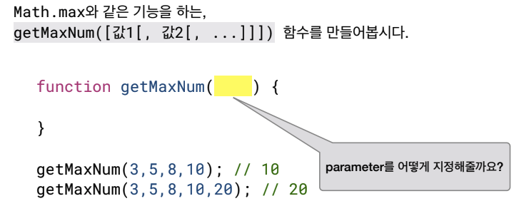 -> Rest Parameter를 이용해 매개변수를 지정해 준다.