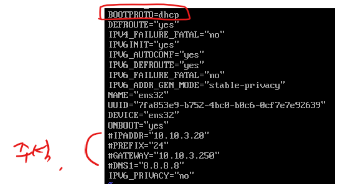 vi /etc/sysconfig/network-scripts/ifcfg-ens32