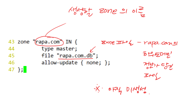 - 위에서 생성한 영역인 rapa.com 에 대한 영역파일인 rapa.com.db를 만들어 주자.