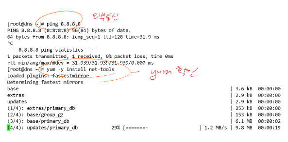 - 통신이 되고, DNS서버가 8.8.8.8로 되어있는 상황에서