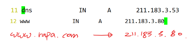 - 누군가 www.rapa.com을 물어보면 211.183.3.80 이라는 IP를 안내.