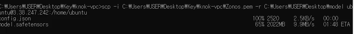 scp -i C:\Users\USER\Desktop\Key\knok-vpc\Zonos.pem -r C:\Users\USER\Desktop\model ubuntu@3.38.247.242:/home/ubuntu