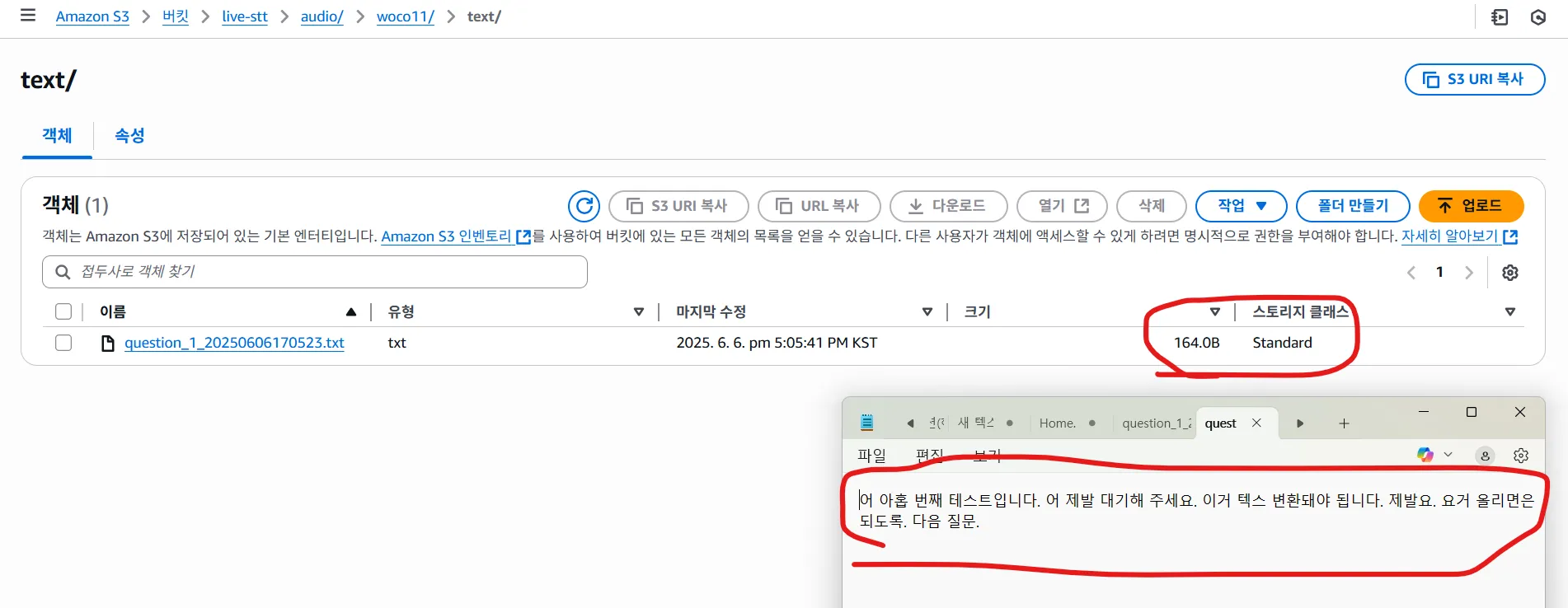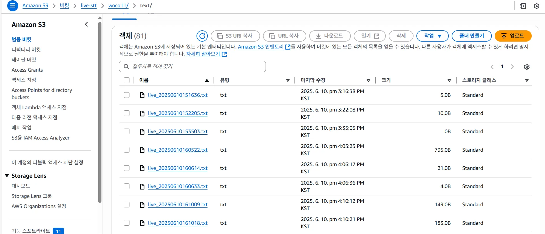 - 구조: 음성 녹음 → 파일 S3 업로드 → Transcribe → 결과 반환