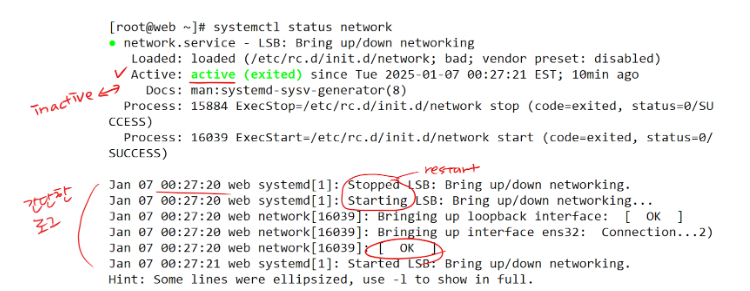 - systemctl status network