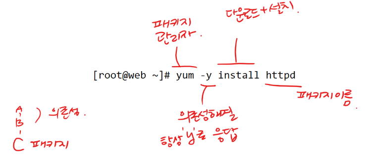 - -y를 통해 C패키지를 설치하기 위한 의존성 패키지 설치 여부에 대한 질문에 ‘yes’로 응답.